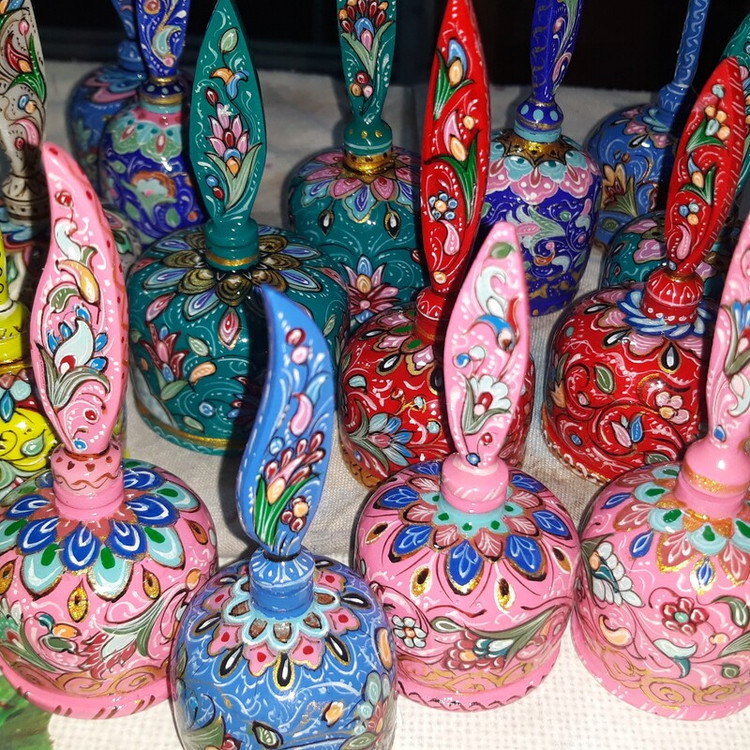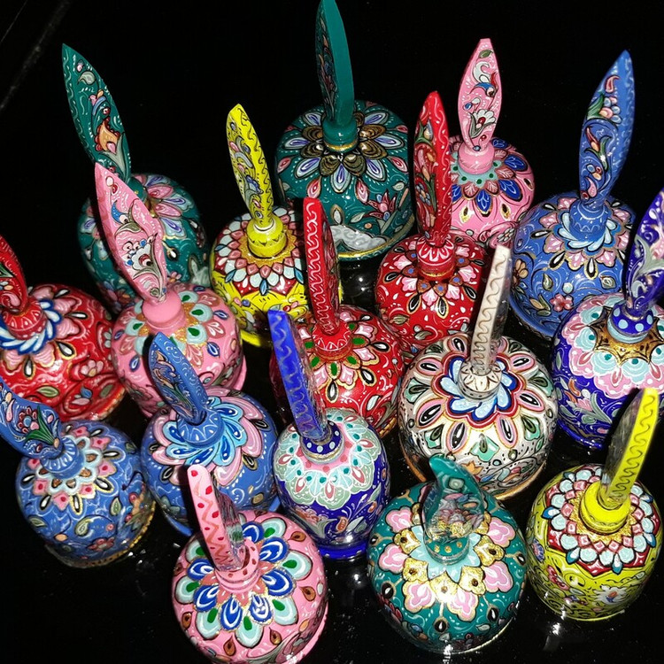 سرمه دان استخوان شتر با نقاشی گل و بوته . الوان .