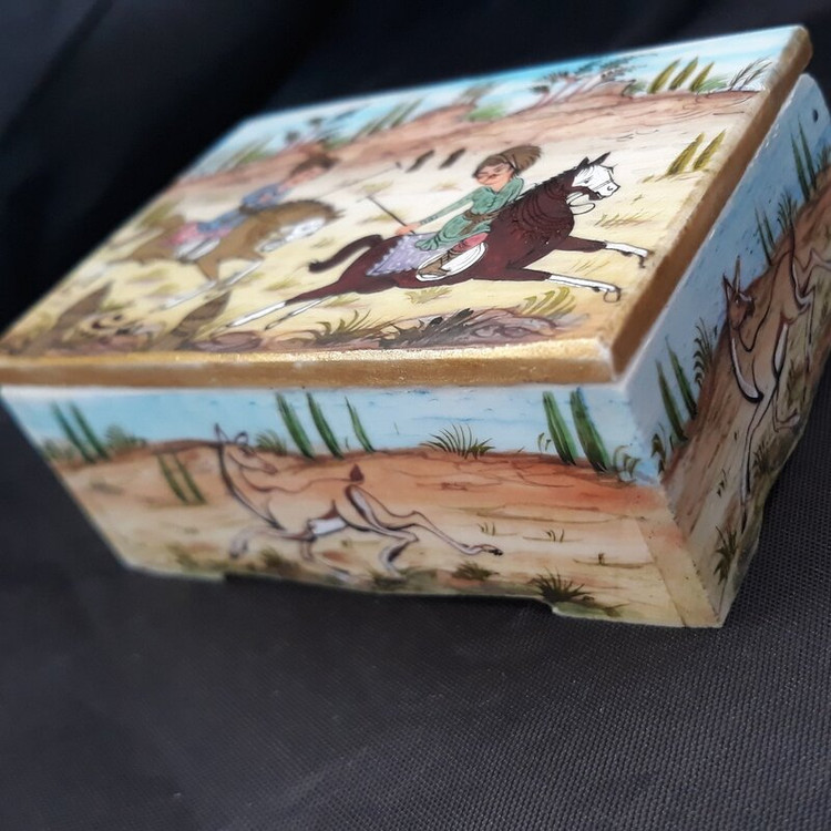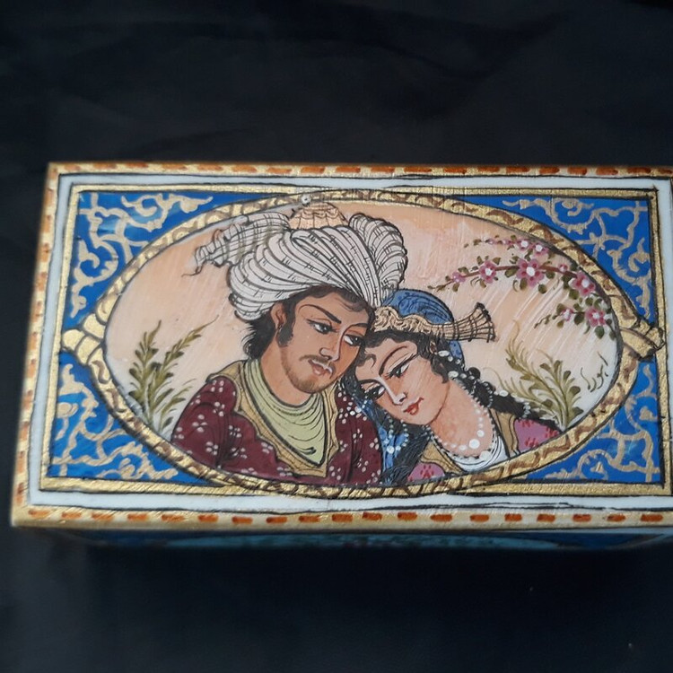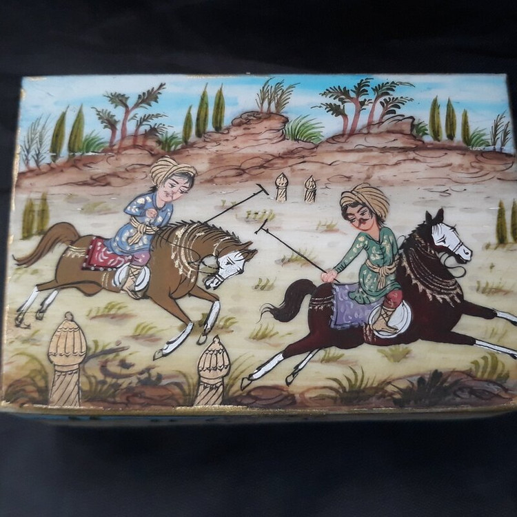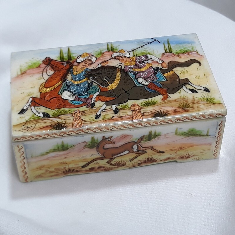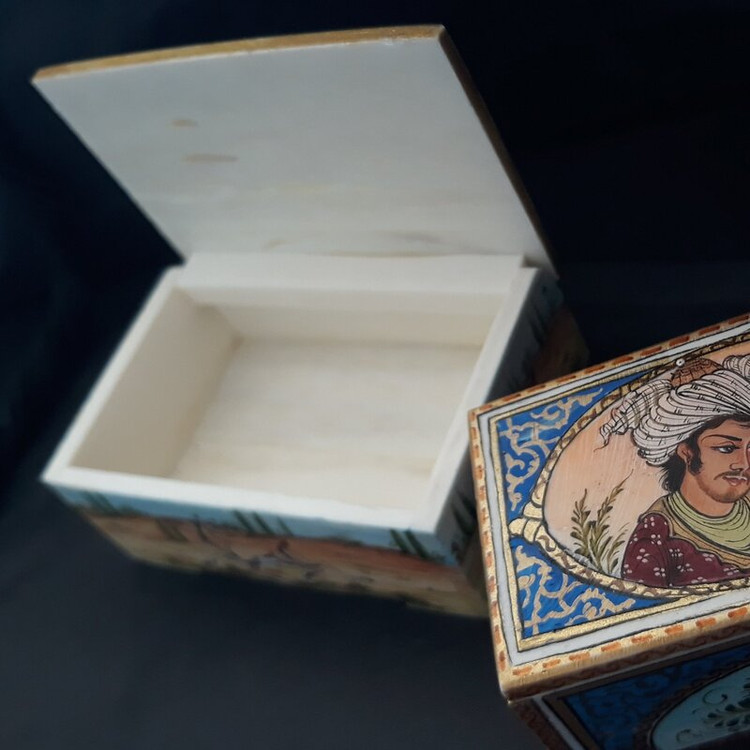 جعبه کبریتی از استخوان شتر با مینیاتور ایرانی