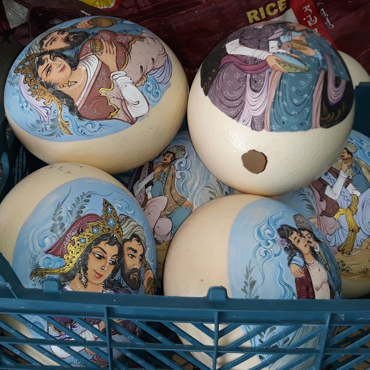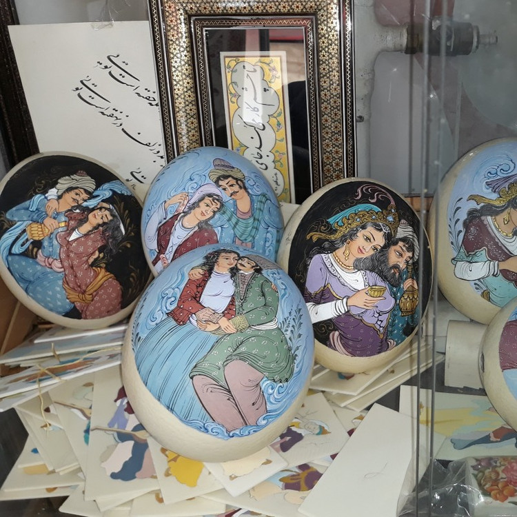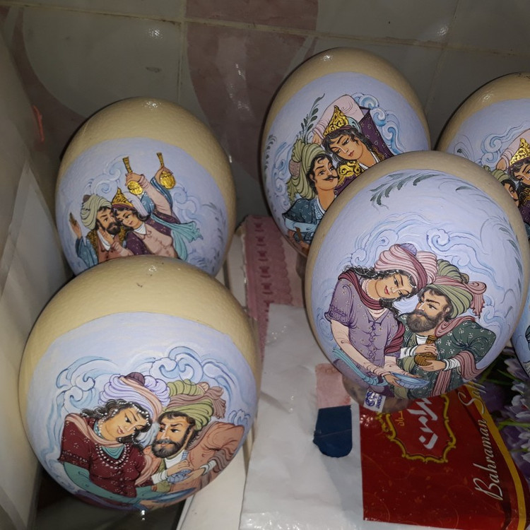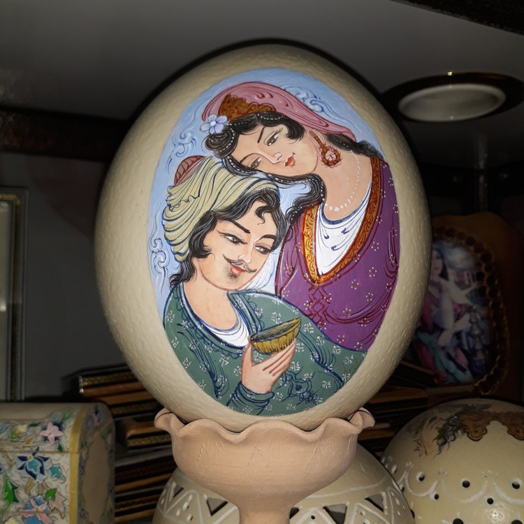 نقش هنر مینیاتور در پوسه تخم شتر مرغ که جز صنایع دستی استان اصفهان میباشد