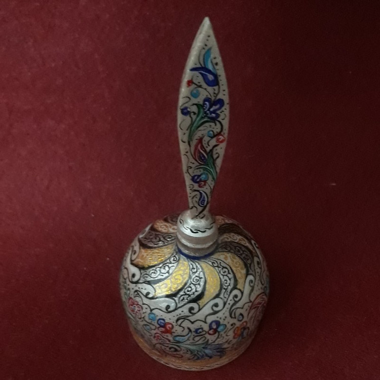 سرمه دان از جنس استخوان شتر دارای نقوش تذهیب اعلاء و با روکش پلی استر و میله نرم بدون هیچ زائده ای